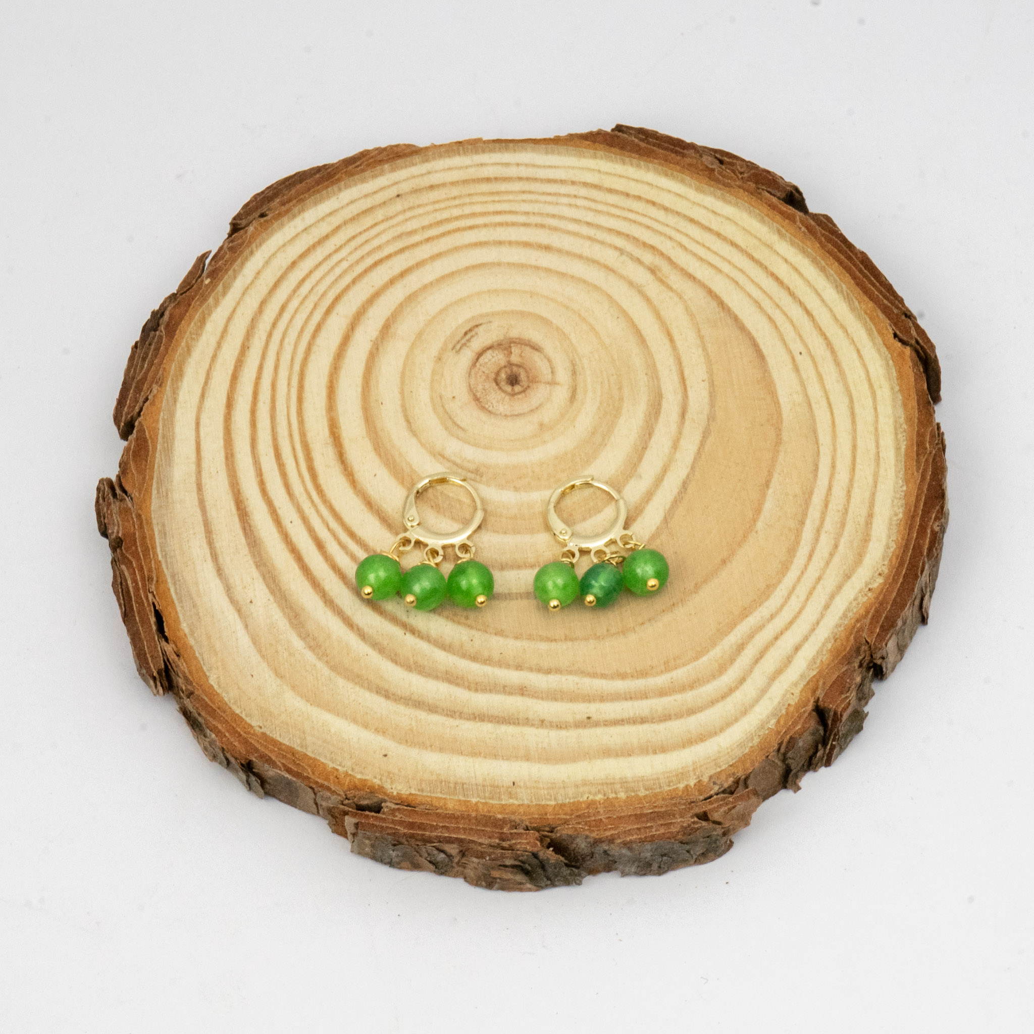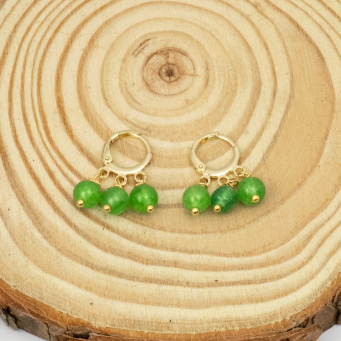 Aros elaborados con aventurina de color verde, combinados con ganchos enchapados en oro, creando un accesorio armonioso y elegante que aporta un toque natural y sofisticado a tu estilo.