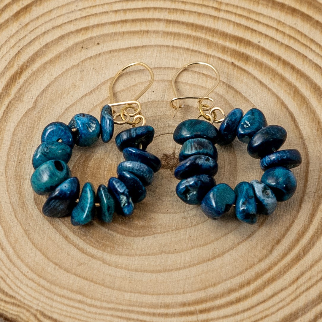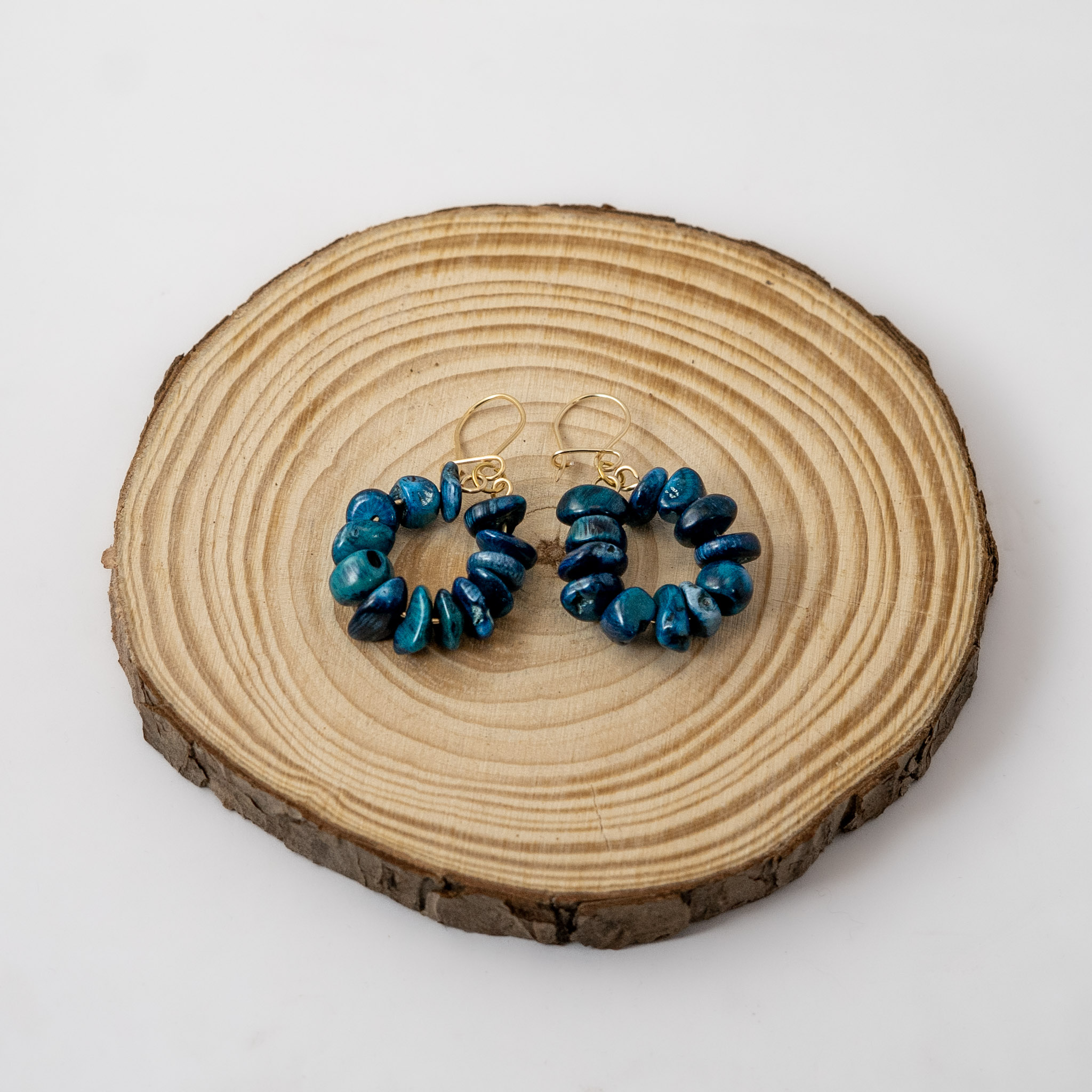 Los Aros Coral Azul destacan por su tonalidad profunda y elegante, acompañada de un brillo cálido gracias a sus ganchos enchapados en oro. El coral azul, poco común y visualmente atractivo, aporta una sensación de frescura y serenidad. Son perfectos para quienes buscan un accesorio distintivo pero sobrio, ideal para ocasiones especiales o para realzar un look cotidiano con un toque de sofisticación.
