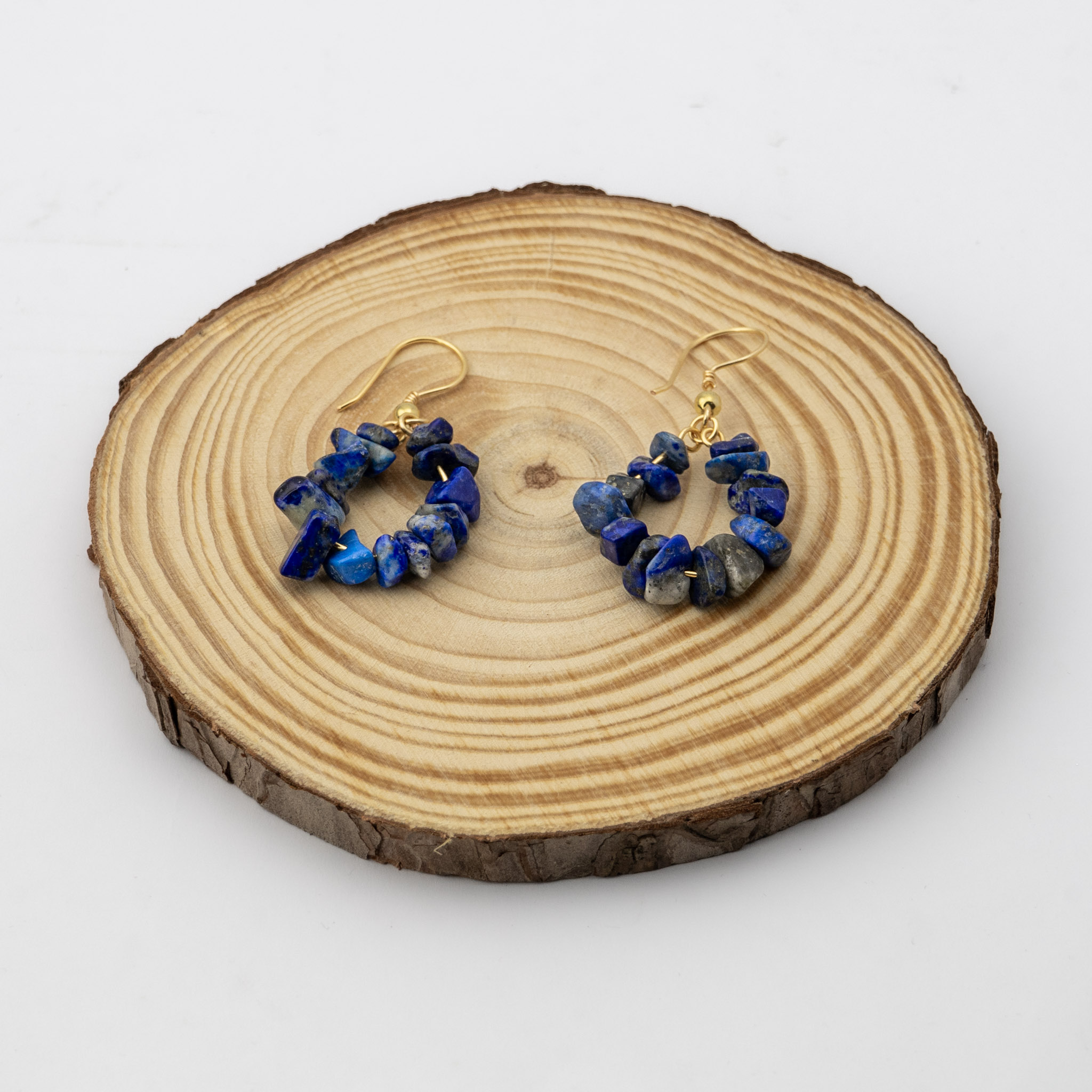 Estos aros artesanales destacan por la intensidad azul profundo del lapislázuli, piedra clásica y elegante que aporta carácter y sofisticación. Su diseño se completa con ganchos enchapados en oro, que realzan el brillo y la belleza natural de la pieza. Ligeros y versátiles, son ideales para complementar cualquier look o regalar como un accesorio único y lleno de estilo.