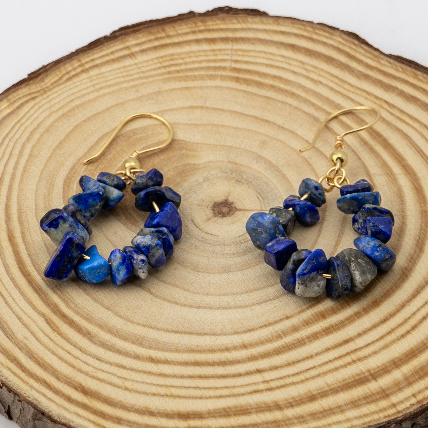 | Material | Lapislázuli con ganchos enchapados en oro |
