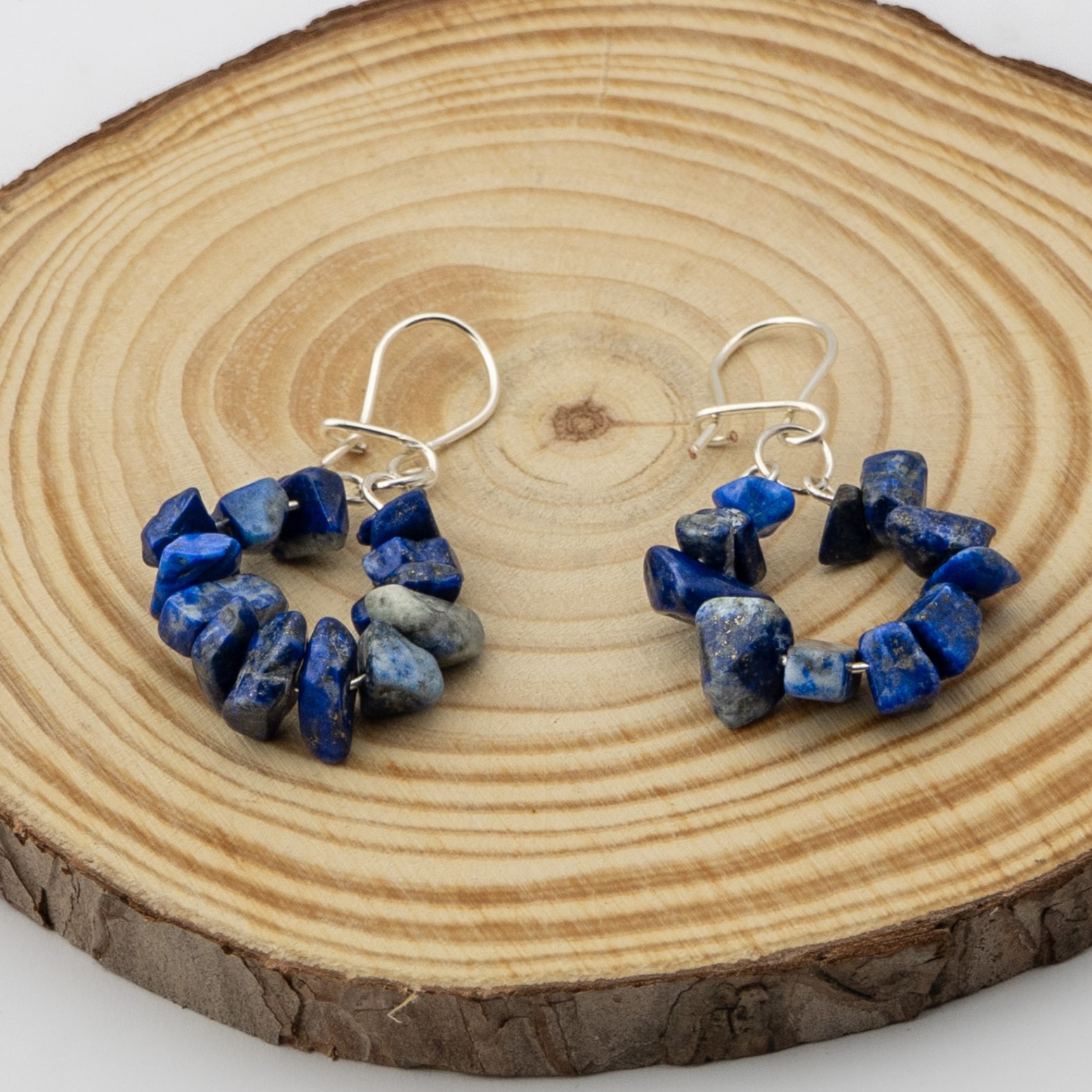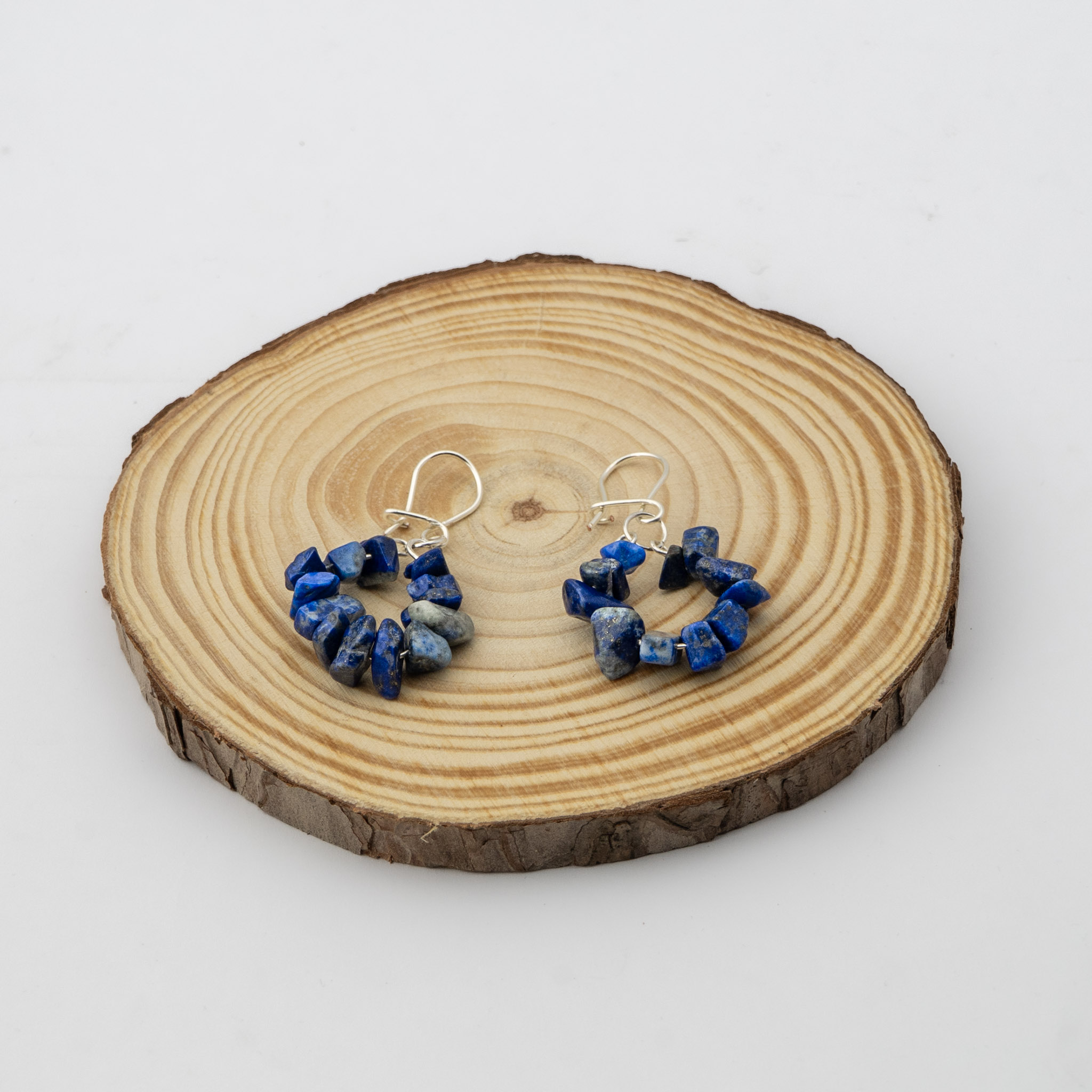 Estos aros artesanales están elaborados con lapislázuli, piedra reconocida por su intenso azul profundo que aporta elegancia y carácter. Su diseño se completa con ganchos enchapados en plata, que realzan la belleza natural de la piedra y ofrecen un acabado refinado. Ligeros y versátiles, son perfectos para el uso diario o como un regalo especial que combina estilo y sofisticación.