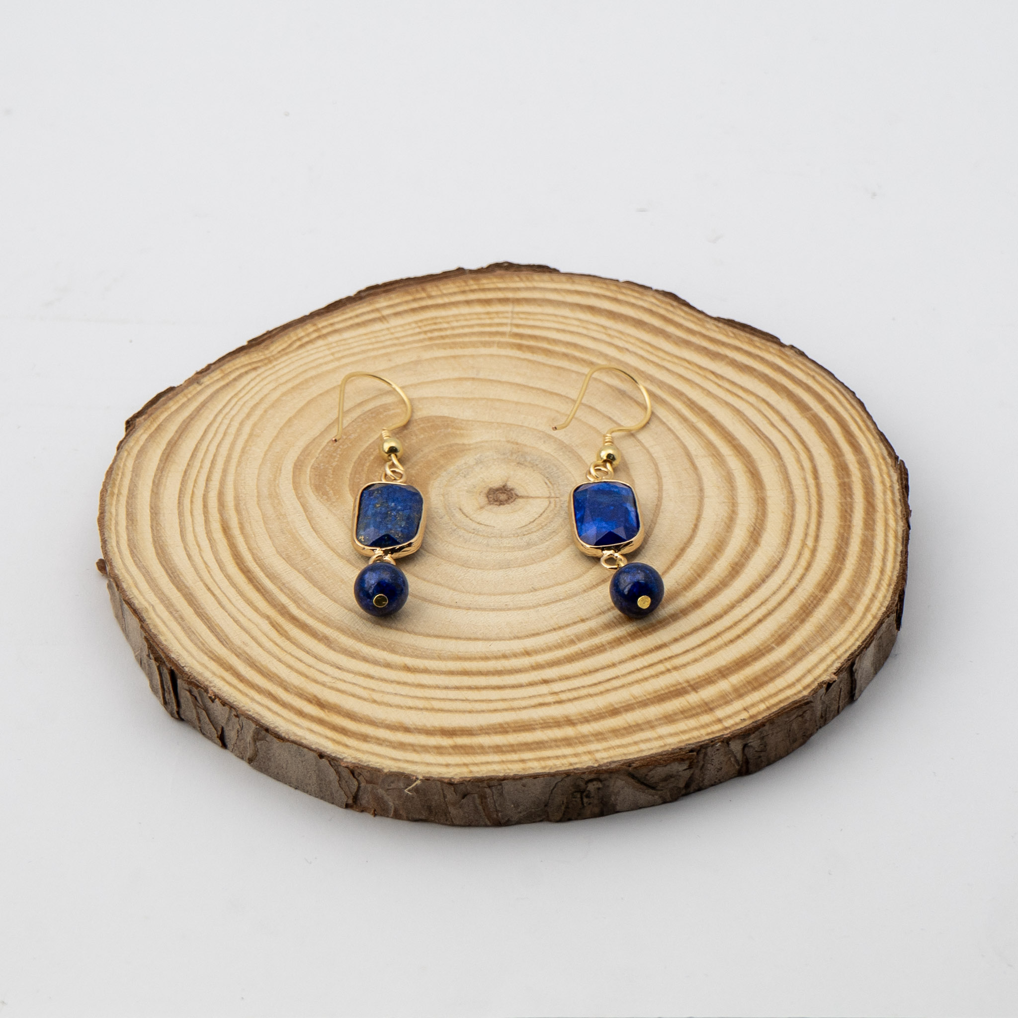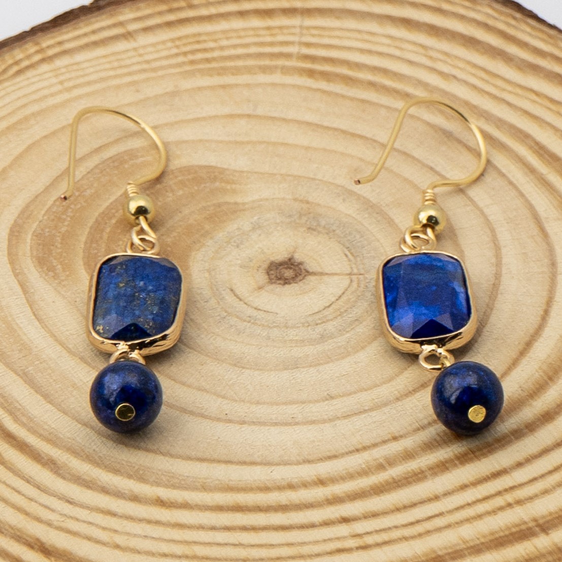 Estos aros artesanales destacan por la intensidad azul profunda del lapislázuli, una piedra clásica y elegante que nunca pasa de moda. Su diseño sencillo y sofisticado se realza con un gancho enchapado en oro, que aporta brillo y distinción. Una pieza versátil y atemporal, ideal para complementar cualquier look o regalar como un detalle lleno de estilo y significado.
