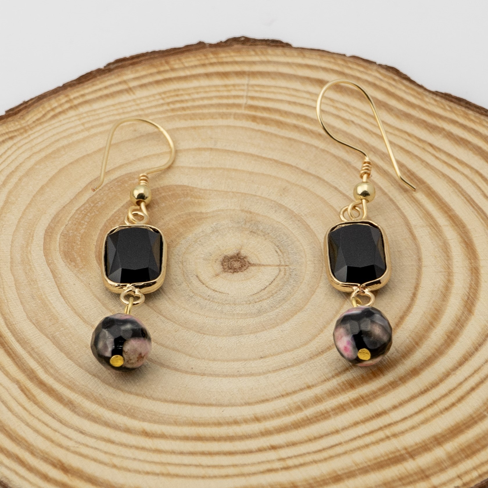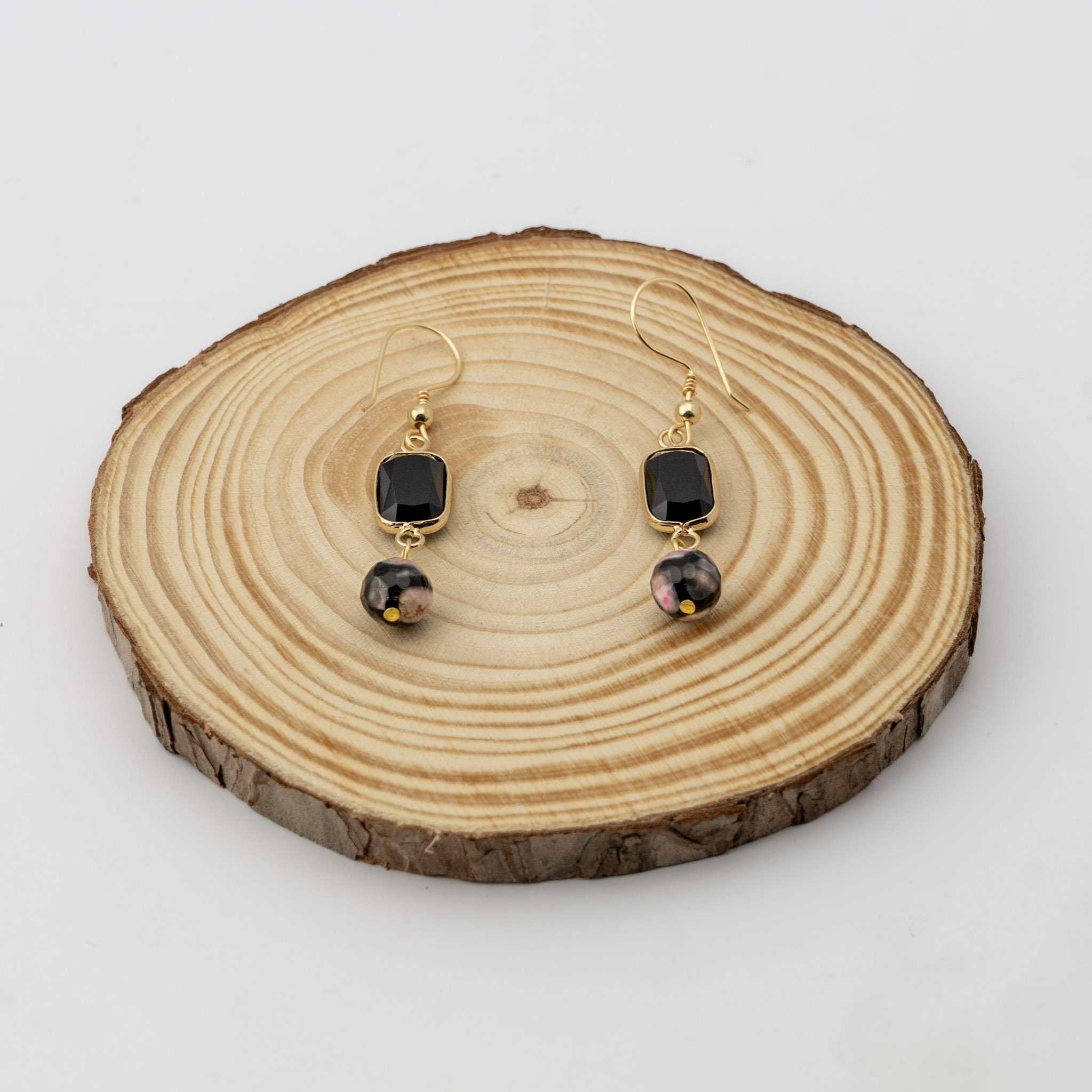 | Material | Obsidiana y ágata tibetana, con gancho enchapado en oro. |