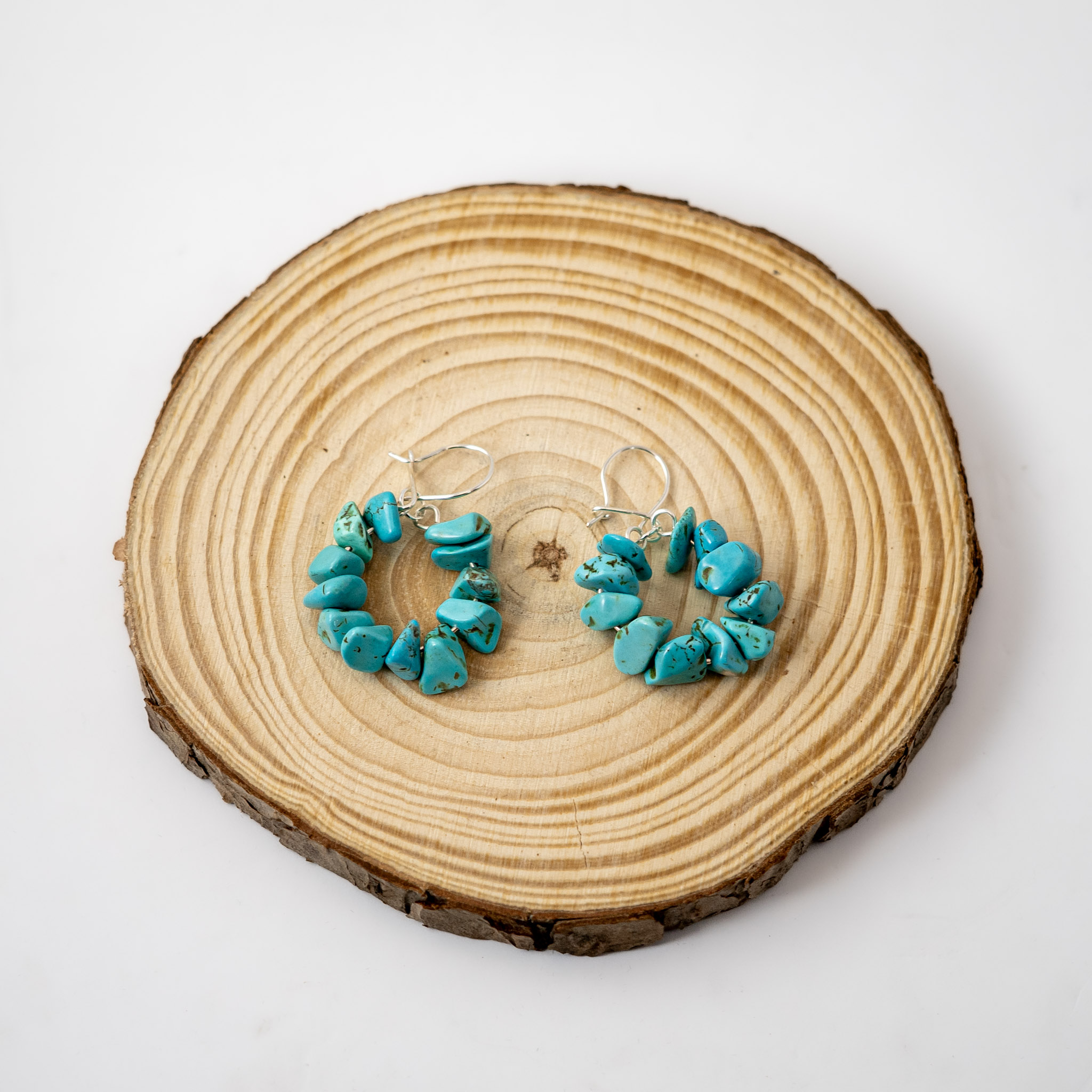 | Cuentas | Piedras turquesa y ganchos enchapados en plata |