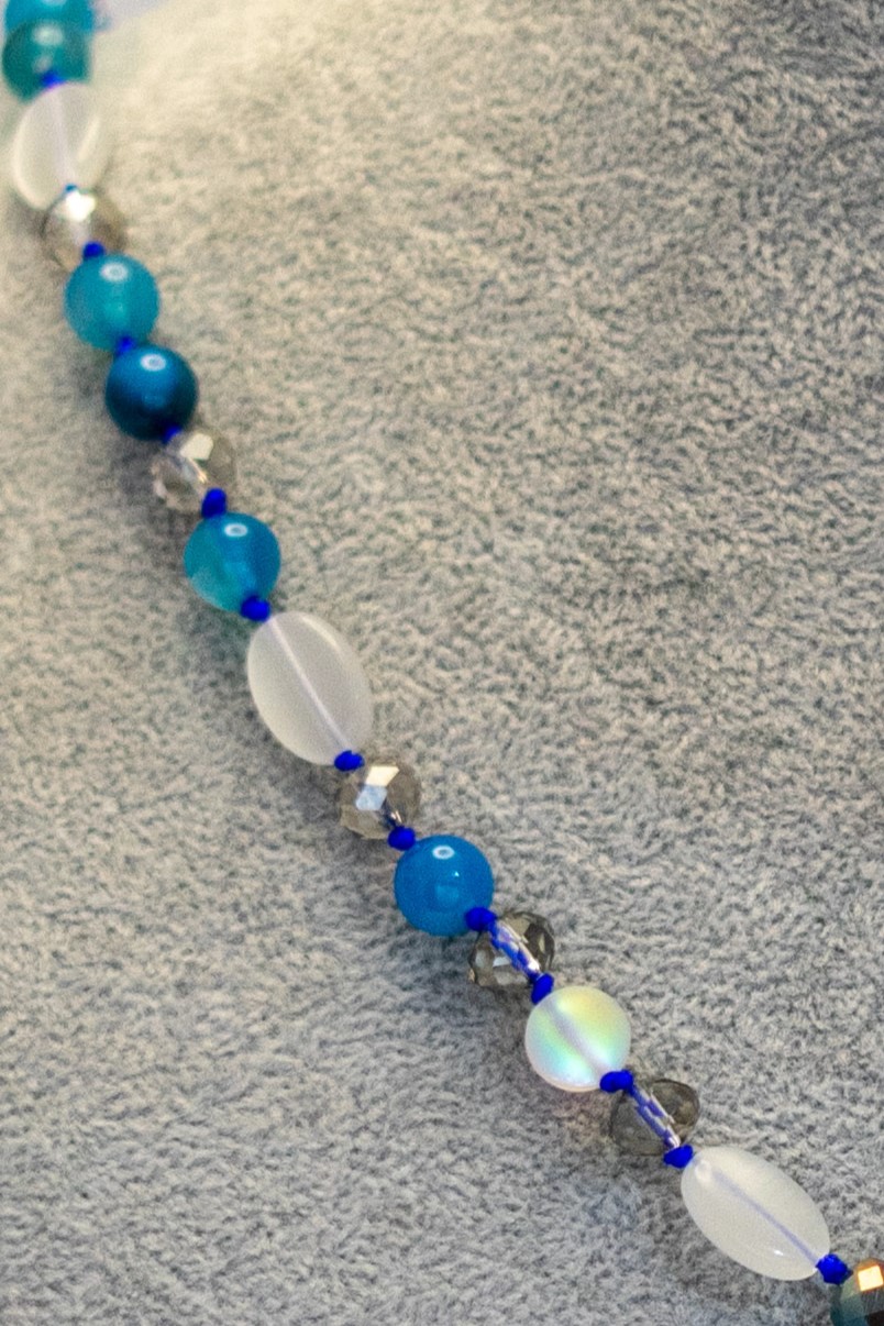 | Materiales Cuentas | Cuarzo sirena con ágatas azules y cristales. Dije enchapado en plata |