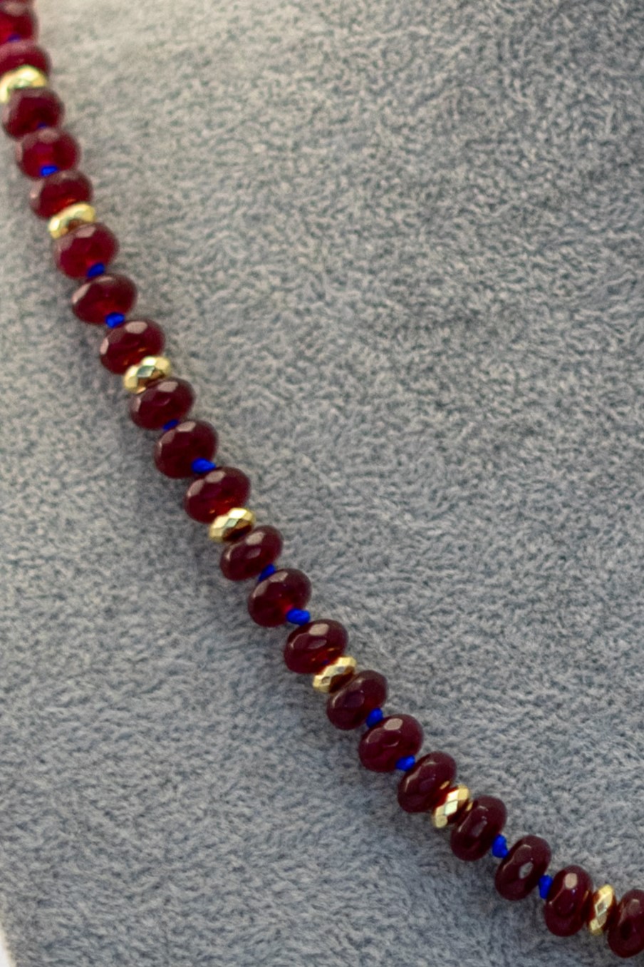 | Materiales Cuentas | broche enchapado en oro, ágata rondell burdeos, ematita |