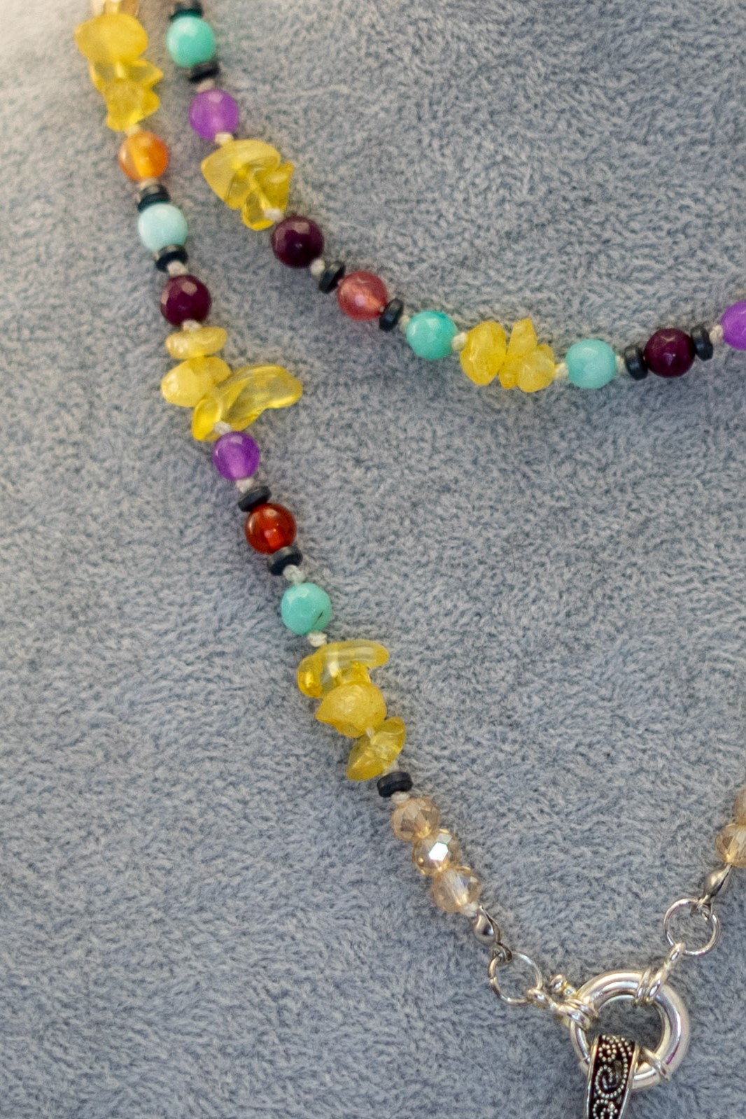 Cada collar es elaborado a mano con dedicación, cuidando cada detalle para resaltar la belleza natural de sus materiales.
