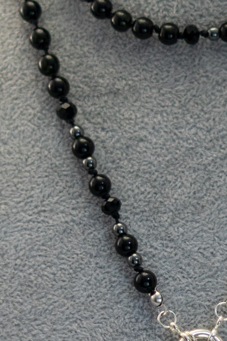 El Collar Obsidiana 7 Chakras es una de esas piezas que no solo se llevan, sino que se sienten. Diseñado con piedras naturales de obsidiana en tonos negros, cristales brillantes y delicadas hematitas, esta joya busca acompañarte con protección, equilibrio y estilo.