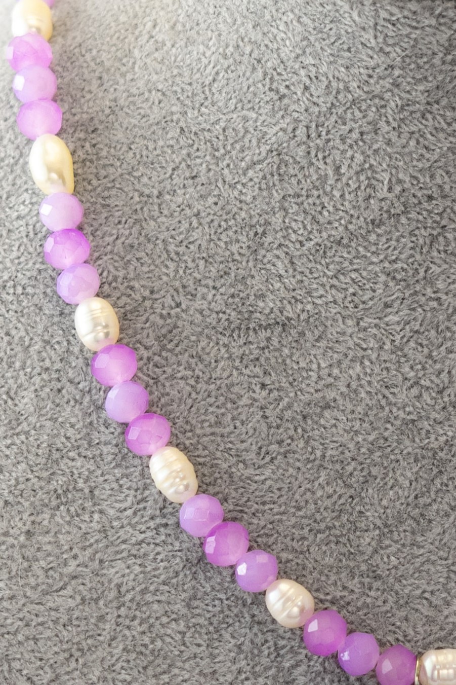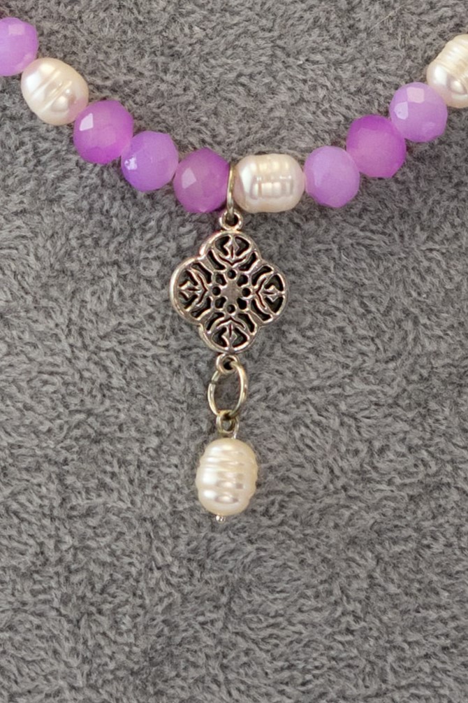 El Collar Perla Morado destaca por su elegancia serena, combinando perlas de río con cristales en suaves tonos lila que aportan brillo y armonía. Su diseño transmite una sensación de calma y feminidad, ideal para complementar looks románticos o dar un toque refinado a cualquier conjunto.