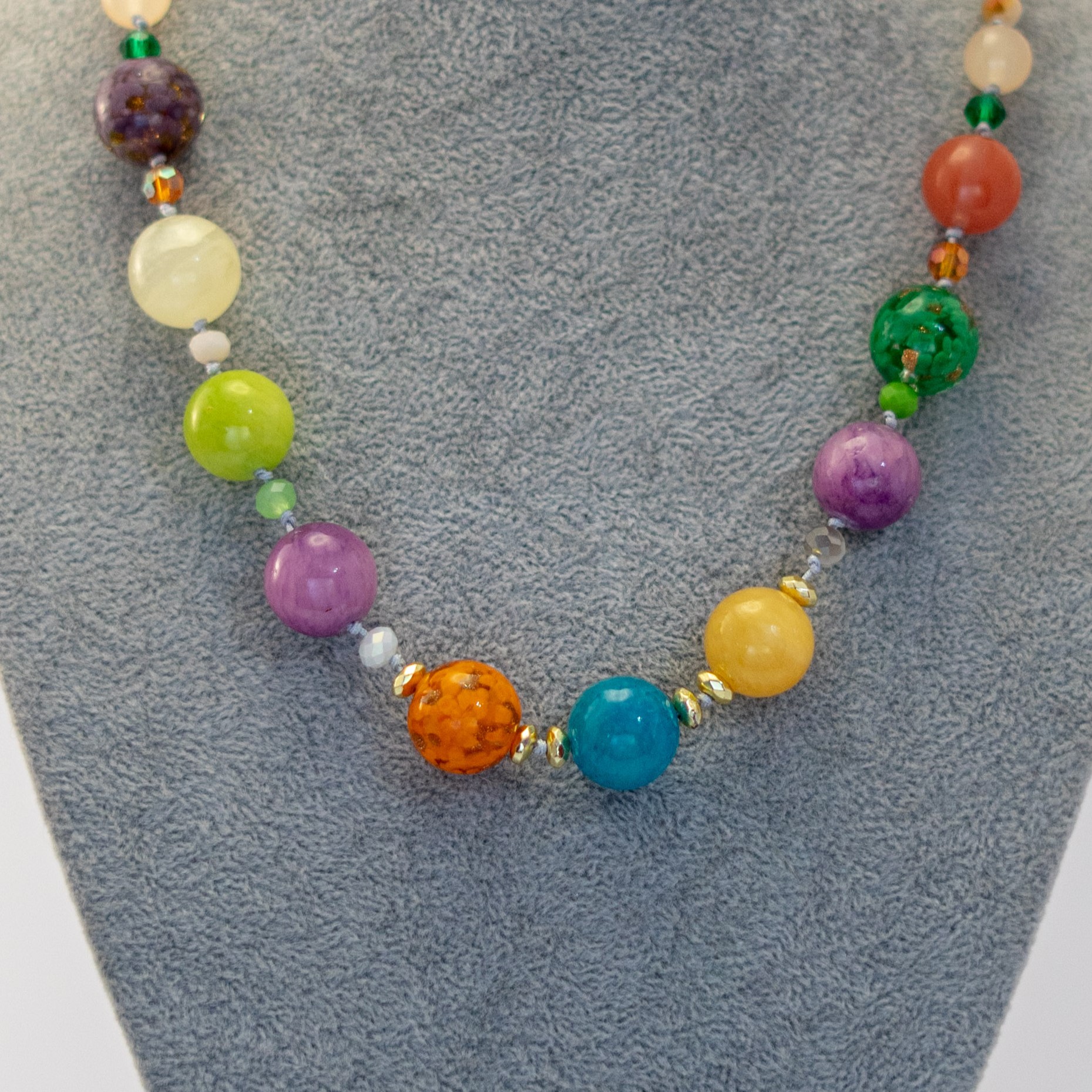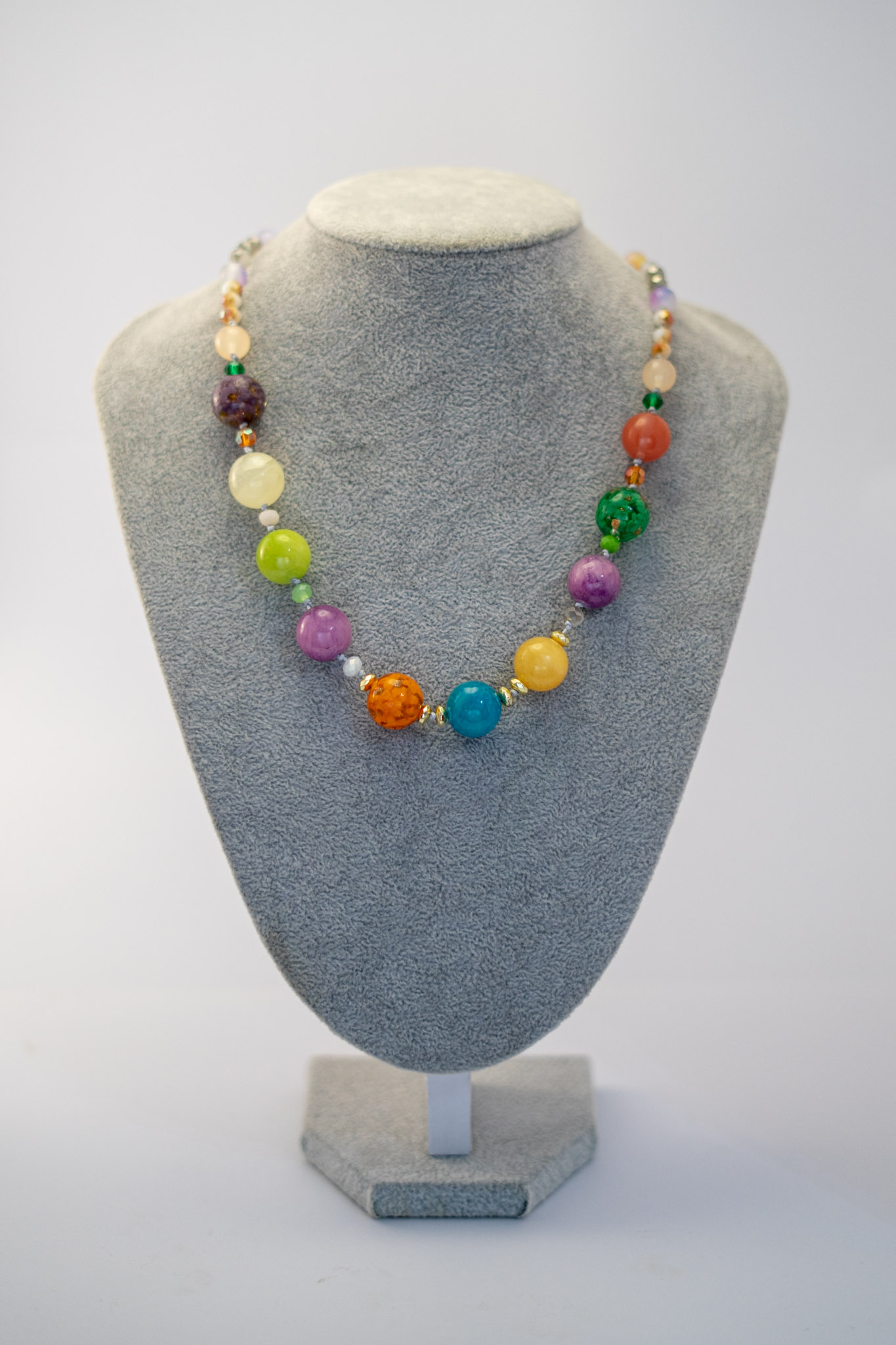 Collar de ónix y hematita con cristales en tonos pastel, una pieza minimalista y sofisticada sin dije, ideal para quienes prefieren un estilo limpio y versátil. Su diseño combina la profundidad del ónix, el brillo metálico de la hematita, la delicadeza del cristal hindú y la suavidad de los cristales en colores pasteles, creando una armonía sutil entre fuerza y suavidad.