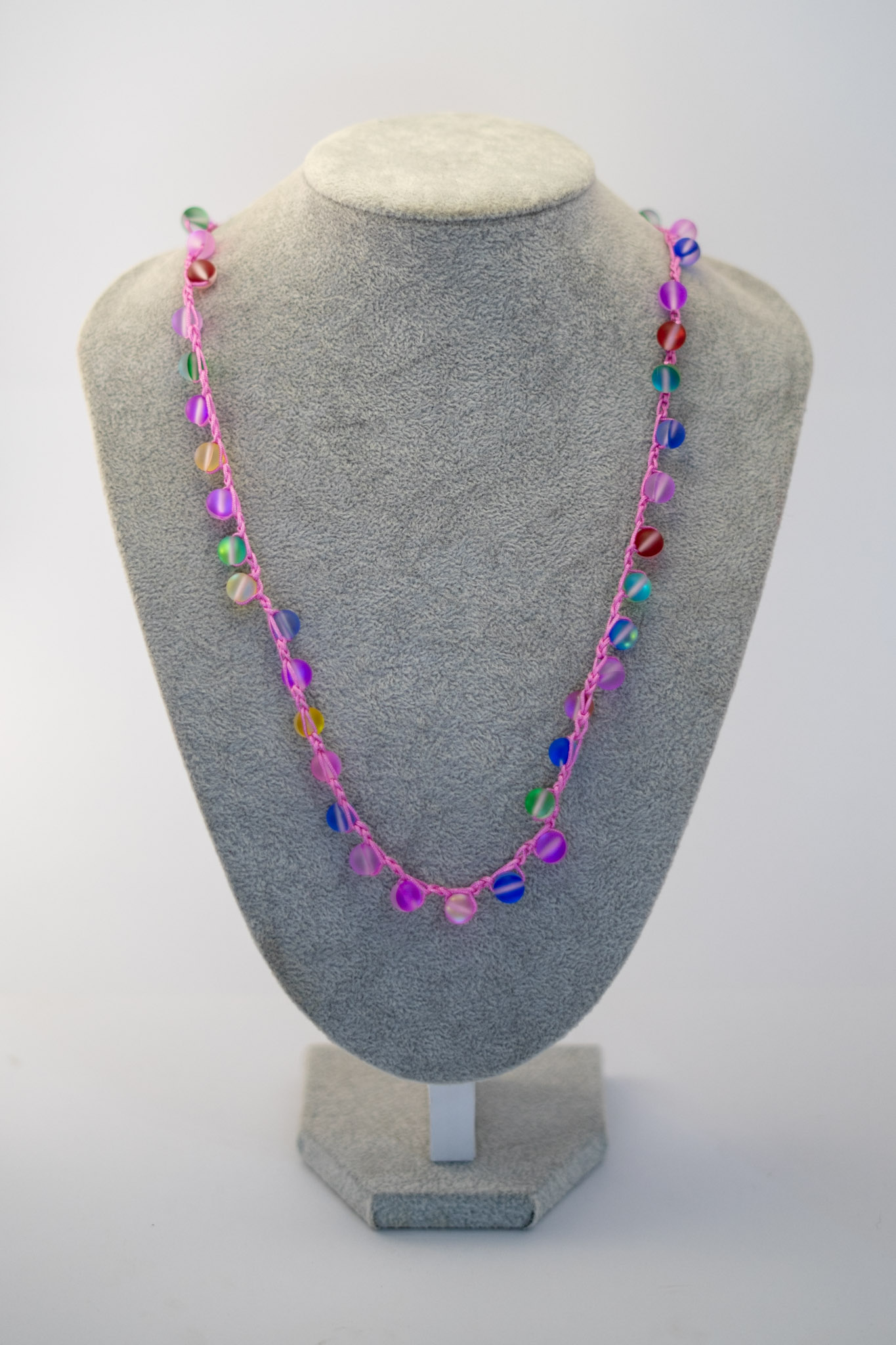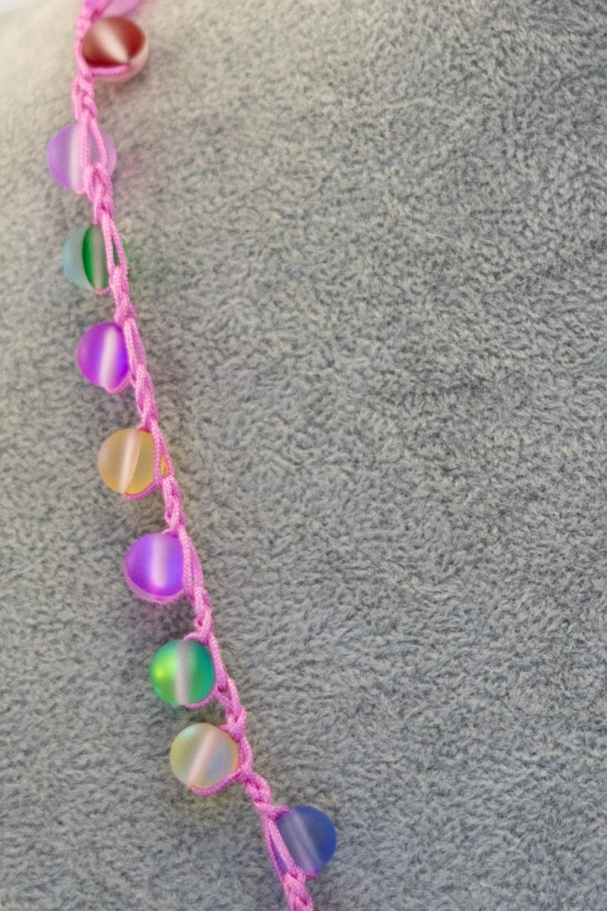 Este collar artesanal destaca por su diseño tejido que realza el encanto del cuarzo sirena multicolor, creando una pieza única y vibrante. Cada cuenta refleja destellos especiales que aportan un toque de luz y alegría a cualquier look. Perfecto para quienes buscan un accesorio versátil, colorido y con un aire bohemio. Su elaboración cuidadosa garantiza un acabado de alta calidad y una gran durabilidad. Ideal para complementar tanto outfits casuales como elegantes, siendo el detalle perfecto para cualquier ocasión.