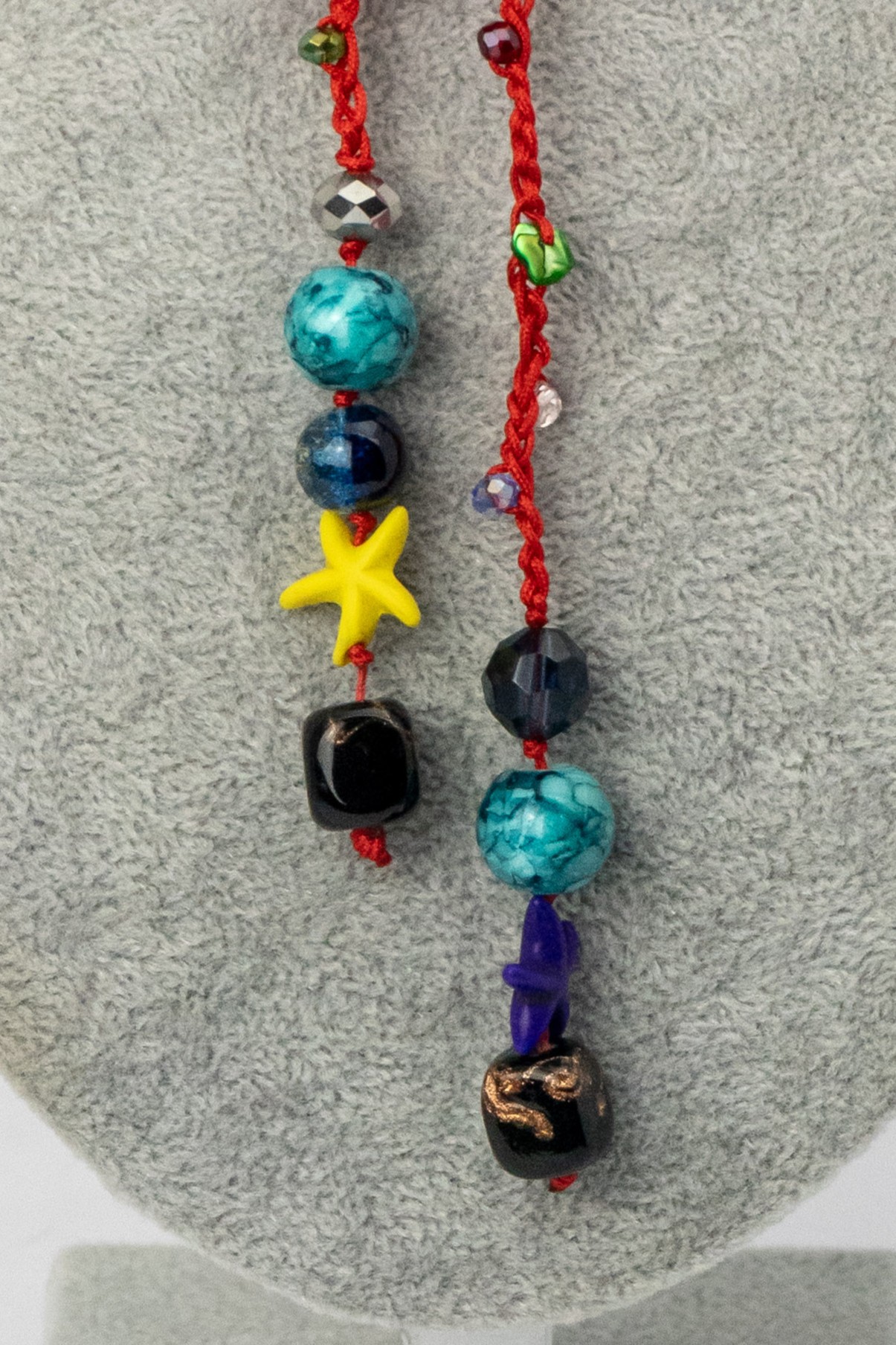 | Cuentas | Nácar con cristales, estrellas de acrílico, cristales hindú y cuentas de cerámica. |