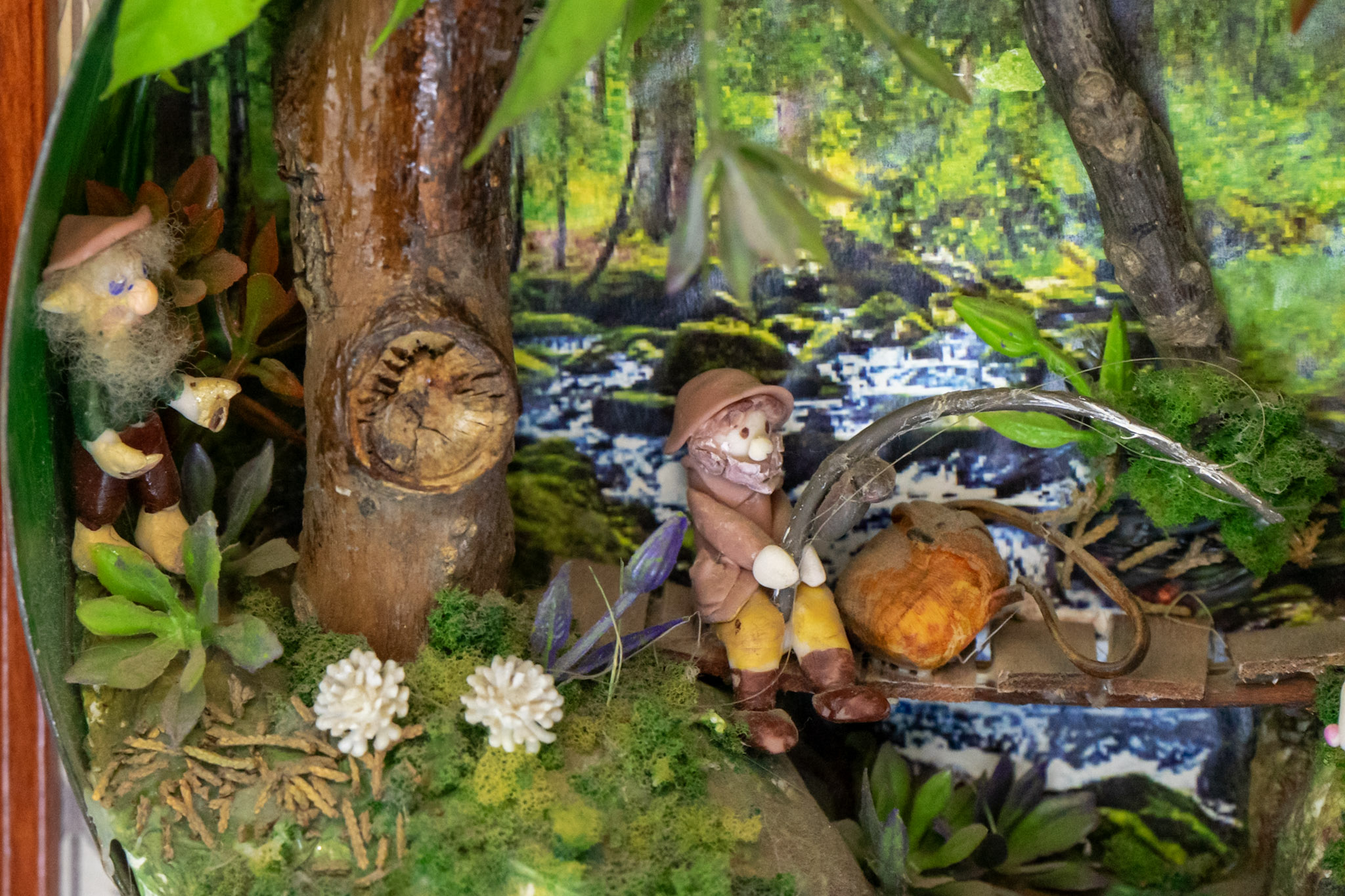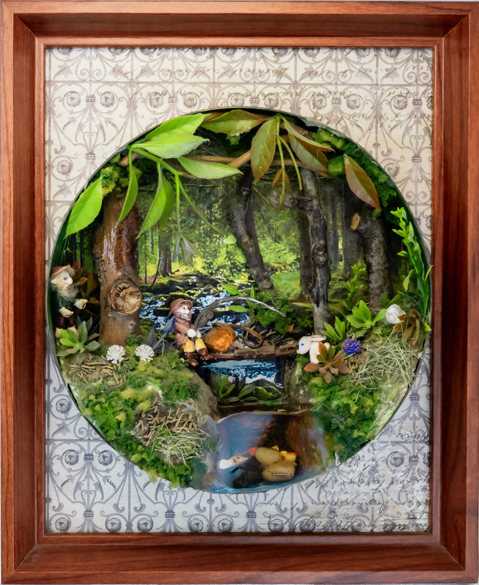 Este diorama circular artesanal, enmarcado con delicadeza, representa una mágica escena que te transporta a un verde bosque encantado. Cada uno de sus pequeños detalles está trabajado con esmero, creando una atmósfera única que combina fantasía y naturaleza. Ideal para quienes buscan una pieza decorativa especial, perfecta como regalo original o para añadir un toque de magia y encanto a cualquier espacio.