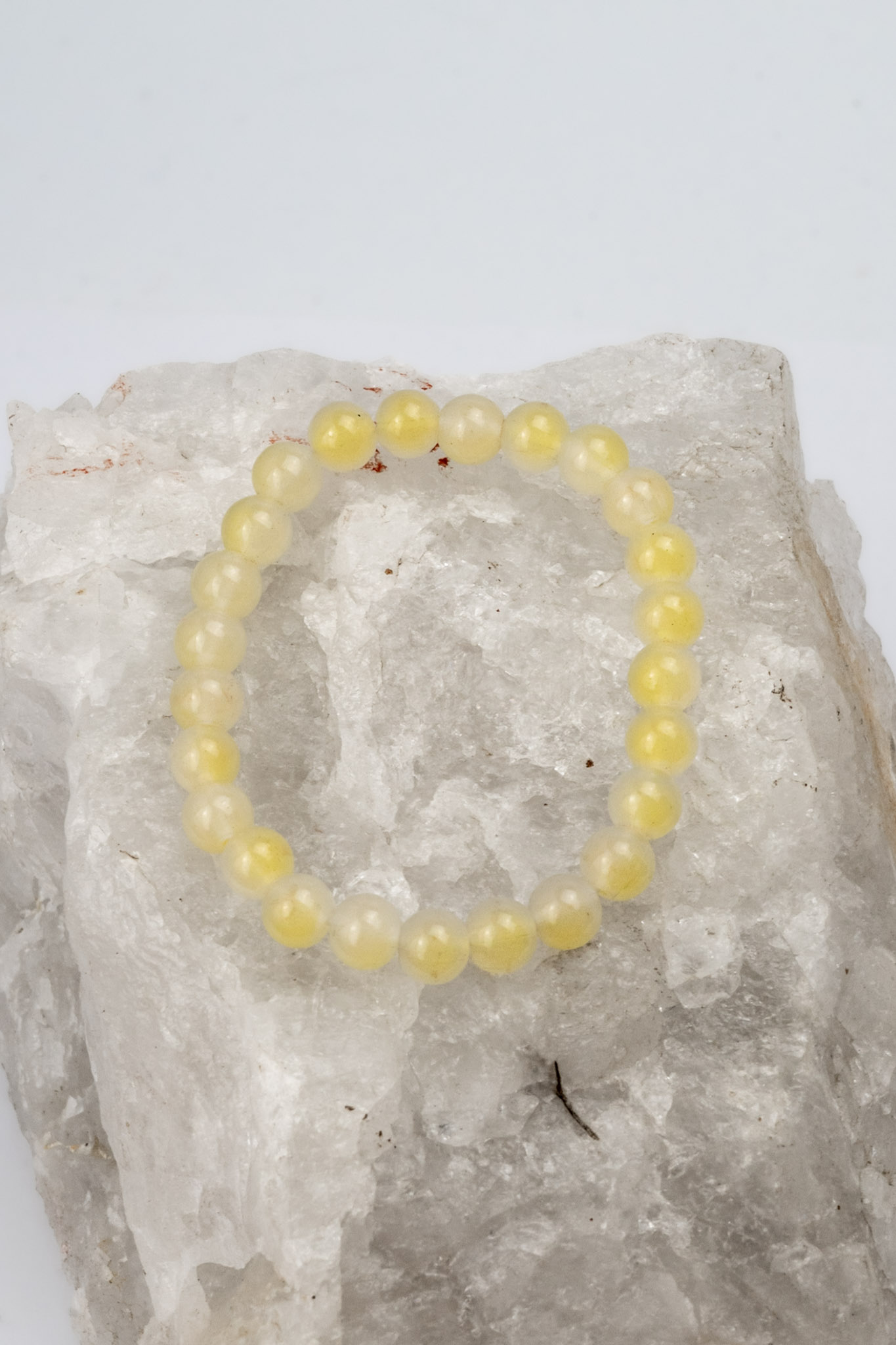Pulsera elasticada artesanal elaborada con ágatas en tono amarillo claro, piedras que transmiten luminosidad y frescura. Su diseño sencillo y versátil la convierte en un accesorio ideal para el uso diario, aportando un toque de color suave que combina fácilmente con distintos estilos. Ligera y cómoda, es también una excelente opción como detalle de regalo lleno de energía positiva.