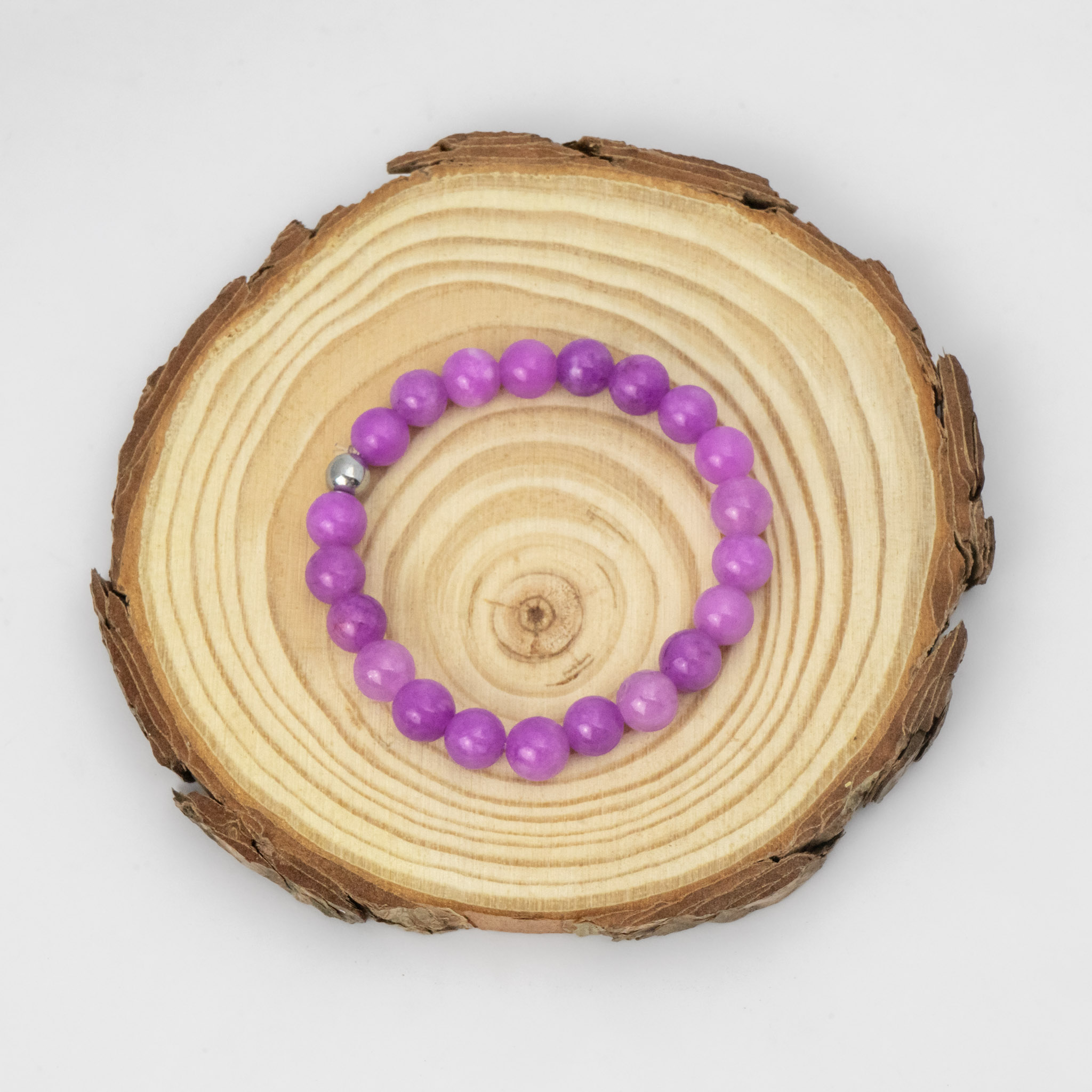 Esta pulsera combina la ágata lavanda, de tono delicado y relajante, con la hematita, que aporta contraste y equilibrio. Su diseño artesanal y armónico refleja serenidad, ideal para quienes buscan una joya elegante y sutil.